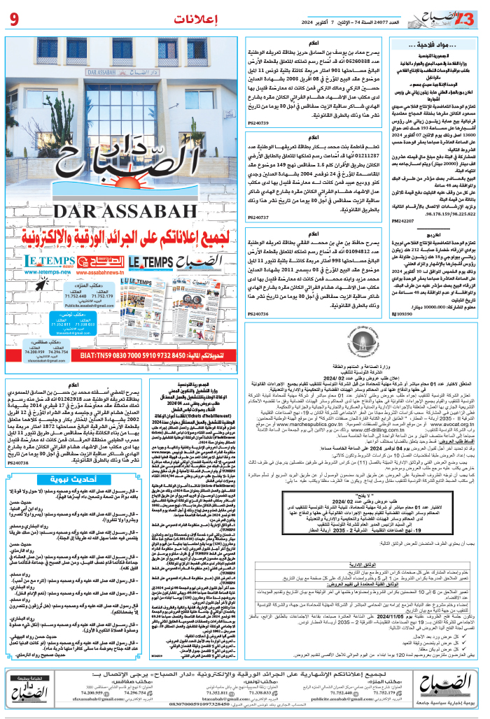اعلانات الصباح 07 اكتوبر 2024