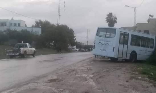 تسببت المياه الراكدة و الامطار الغزيرة مساء اليوم الاربعاء 23 نوفمبر 2022 في انزلاق حافلة مخصصة لنقل تلاميذ المدرسة الاعدادية منزل جميل في حادث لم يسفر عن اضرار مادية و لا بشرية. وقد تدخلت فرق الصيانة التابعة للشركة الجهوية للنقل ببنزرت لإعادة الحافلة الى مسارها .