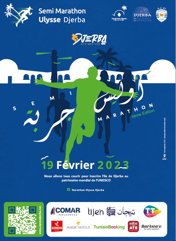 تستعد جزيرة جربة لاحتضان الدورة الثالثة لنصف ماراطون " جربة اوليس" الذي ينتظم هذا العام تحت شعار " نتسابق من اجل تسجيل جزيرة جربة ضمن قائمة التراث العالمي لمنظمة اليونسكو" وذلك بالتعاون بين منظمة التصرف في الوجهة السياحية جربة ونادي سبورتينغ جربة ومؤسسة جربة للتنمية المستدامة وبدعم من شركة تأمينات كومار و" تيجان".